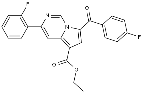 - Synonyms: ET 7-(4-FLUOROBENZOYL)-3-(2-FLUOROPHENYL)PYRROLO(1,2-C)PYRIMIDINE-5-CARBOXYLATE Pyrrolo[1,2-c]pyrimidine-5-carboxylic acid, 7-(4-fluorobenzoyl)-3-(2-fluorophenyl)-, ethyl ester