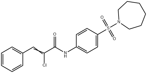 - Synonyms: N-[4-(1-azepanylsulfonyl)phenyl]-2-chloro-3-phenylacrylamide (2Z)-N-[4-(azepan-1-ylsulfonyl)phenyl]-2-chloro-3-phenylprop-2-enamide 2-Propenamide, 2-chloro-N-[4-[(hexahydro-1H-azepin-1-yl)sulfonyl]phenyl]-3-phenyl-