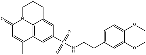 - Synonyms: N-[2-(3,4-dimethoxyphenyl)ethyl]-7-methyl-5-oxo-2,3-dihydro-1H,5H-pyrido[3,2,1-ij]quinoline-9-sulfonamide 1H,5H-Benzo[ij]quinolizine-9-sulfonamide, N-[2-(3,4-dimethoxyphenyl)ethyl]-2,3-dihydro-7-methyl-5-oxo-