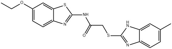 - Synonyms: N-(6-ethoxy-1,3-benzothiazol-2-yl)-2-[(6-methyl-1H-benzimidazol-2-yl)sulfanyl]acetamide Acetamide, N-(6-ethoxy-2-benzothiazolyl)-2-[(6-methyl-1H-benzimidazol-2-yl)thio]-