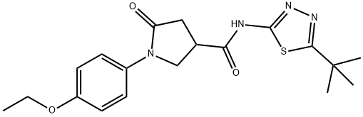 - Synonyms: N-(5-tert-butyl-1,3,4-thiadiazol-2-yl)-1-(4-ethoxyphenyl)-5-oxopyrrolidine-3-carboxamide 3-Pyrrolidinecarboxamide, N-[5-(1,1-dimethylethyl)-1,3,4-thiadiazol-2-yl]-1-(4-ethoxyphenyl)-5-oxo-