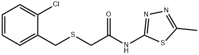 - Synonyms: 2-[(2-chlorobenzyl)sulfanyl]-N-(5-methyl-1,3,4-thiadiazol-2-yl)acetamide Acetamide, 2-[[(2-chlorophenyl)methyl]thio]-N-(5-methyl-1,3,4-thiadiazol-2-yl)-