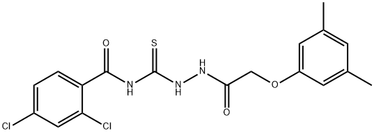 - Synonyms: 2,4-dichloro-N-({2-[(3,5-dimethylphenoxy)acetyl]hydrazino}carbonothioyl)benzamide 2,4-dichloro-N-({2-[(3,5-dimethylphenoxy)acetyl]hydrazinyl}carbonothioyl)benzamide Acetic acid, 2-(3,5-dimethylphenoxy)-, 2-[[(2,4-dichlorobenzoyl)amino]thioxomethyl]hydrazide