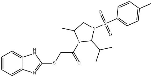 - Synonyms: 2-(1H-benzimidazol-2-ylsulfanyl)-1-{5-methyl-3-[(4-methylphenyl)sulfonyl]-2-(propan-2-yl)imidazolidin-1-yl}ethanone Ethanone, 2-(1H-benzimidazol-2-ylthio)-1-[5-methyl-2-(1-methylethyl)-3-[(4-methylphenyl)sulfonyl]-1-imidazolidinyl]-