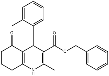 - Synonyms: benzyl 2-methyl-4-(2-methylphenyl)-5-oxo-1,4,5,6,7,8-hexahydroquinoline-3-carboxylate 3-Quinolinecarboxylic acid, 1,4,5,6,7,8-hexahydro-2-methyl-4-(2-methylphenyl)-5-oxo-, phenylmethyl ester