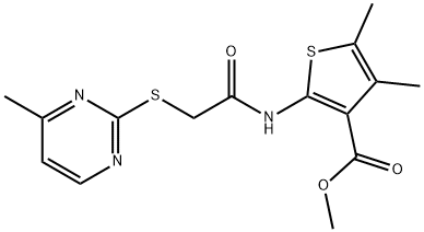 - Synonyms: methyl 4,5-dimethyl-2-(2-((4-methylpyrimidin-2-yl)thio)acetamido)thiophene-3-carboxylate 3-Thiophenecarboxylic acid, 4,5-dimethyl-2-[[2-[(4-methyl-2-pyrimidinyl)thio]acetyl]amino]-, methyl ester