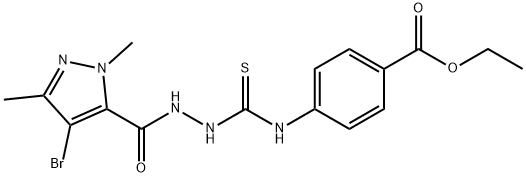 - Synonyms: ethyl 4-(2-(4-bromo-1,3-dimethyl-1H-pyrazole-5-carbonyl)hydrazinecarbothioamido)benzoate 1H-Pyrazole-5-carboxylic acid, 4-bromo-1,3-dimethyl-, 2-[[[4-(ethoxycarbonyl)phenyl]amino]thioxomethyl]hydrazide