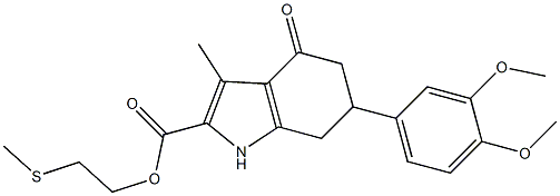 - Synonyms: 2-(methylthio)ethyl 6-(3,4-dimethoxyphenyl)-3-methyl-4-oxo-4,5,6,7-tetrahydro-1H-indole-2-carboxylate
