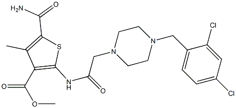 - Synonyms: methyl 5-carbamoyl-2-(2-(4-(2,4-dichlorobenzyl)piperazin-1-yl)acetamido)-4-methylthiophene-3-carboxylate