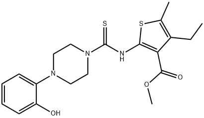 - Synonyms: methyl 4-ethyl-2-(4-(2-hydroxyphenyl)piperazine-1-carbothioamido)-5-methylthiophene-3-carboxylate 3-Thiophenecarboxylic acid, 4-ethyl-2-[[[4-(2-hydroxyphenyl)-1-piperazinyl]thioxomethyl]amino]-5-methyl-, methyl ester