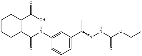 - Synonyms: (E)-2-((3-(1-(2-(ethoxycarbonyl)hydrazono)ethyl)phenyl)carbamoyl)cyclohexanecarboxylic acid Hydrazinecarboxylic acid, 2-[1-[3-[[(2-carboxycyclohexyl)carbonyl]amino]phenyl]ethylidene]-, 1-ethyl ester
