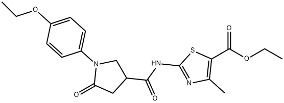 - Synonyms: ethyl 2-(1-(4-ethoxyphenyl)-5-oxopyrrolidine-3-carboxamido)-4-methylthiazole-5-carboxylate 5-Thiazolecarboxylic acid, 2-[[[1-(4-ethoxyphenyl)-5-oxo-3-pyrrolidinyl]carbonyl]amino]-4-methyl-, ethyl ester