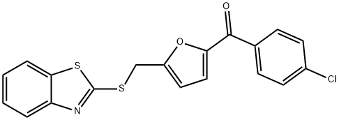 - Synonyms: [5-(1,3-benzothiazol-2-ylsulfanylmethyl)furan-2-yl]-(4-chlorophenyl)methanone Methanone, [5-[(2-benzothiazolylthio)methyl]-2-furanyl](4-chlorophenyl)-