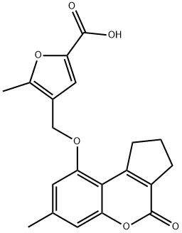 - Synonyms: 2-Furancarboxylic acid, 5-methyl-4-[[(1,2,3,4-tetrahydro-7-methyl-4-oxocyclopenta[c][1]benzopyran-9-yl)oxy]methyl]- 5-methyl-4-[(7-methyl-4-oxo-2,3-dihydro-1H-cyclopenta[c]chromen-9-yl)oxymethyl]furan-2-carboxylic acid