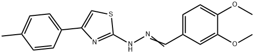 - Synonyms: N-[(E)-(3,4-dimethoxyphenyl)methylideneamino]-4-(4-methylphenyl)-1,3-thiazol-2-amine Benzaldehyde, 3,4-dimethoxy-, 2-[4-(4-methylphenyl)-2-thiazolyl]hydrazone N-(3,4-DIMETHOXY-BENZYLIDENE)-N'-(4-P-TOLYL-3H-THIAZOL-2-YLIDENE)-HYDRAZINE N-(3,4-DIMETHOXY-BENZYLIDENE)-N'-(4-P-TOLYL-3H-THIAZOL-2-YLIDENE)-HYDRAZINE