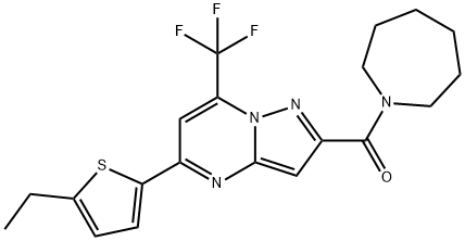 - Synonyms: azepan-1-yl-[5-(5-ethylthiophen-2-yl)-7-(trifluoromethyl)pyrazolo[1,5-a]pyrimidin-2-yl]methanone Methanone, [5-(5-ethyl-2-thienyl)-7-(trifluoromethyl)pyrazolo[1,5-a]pyrimidin-2-yl](hexahydro-1H-azepin-1-yl)-