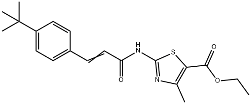 - Synonyms: ethyl 2-[[(E)-3-(4-tert-butylphenyl)prop-2-enoyl]amino]-4-methyl-1,3-thiazole-5-carboxylate 5-Thiazolecarboxylic acid, 2-[[3-[4-(1,1-dimethylethyl)phenyl]-1-oxo-2-propen-1-yl]amino]-4-methyl-, ethyl ester