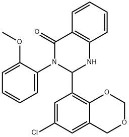 - Synonyms: 2-(6-chloro-4H-1,3-benzodioxin-8-yl)-3-(2-methoxyphenyl)-1,2-dihydroquinazolin-4-one 4(1H)-Quinazolinone, 2-(6-chloro-4H-1,3-benzodioxin-8-yl)-2,3-dihydro-3-(2-methoxyphenyl)-
