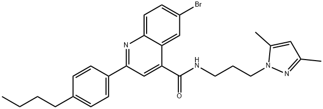 - Synonyms: 6-bromo-2-(4-butylphenyl)-N-[3-(3,5-dimethylpyrazol-1-yl)propyl]quinoline-4-carboxamide 4-Quinolinecarboxamide, 6-bromo-2-(4-butylphenyl)-N-[3-(3,5-dimethyl-1H-pyrazol-1-yl)propyl]-