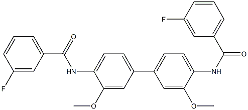 - Synonyms: 3-fluoro-N-[4-[4-[(3-fluorobenzoyl)amino]-3-methoxyphenyl]-2-methoxyphenyl]benzamide Benzamide, N,N'-(3,3'-dimethoxy[1,1'-biphenyl]-4,4'-diyl)bis[3-fluoro- (9CI)