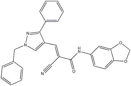 - Synonyms: (E)-N-(1,3-benzodioxol-5-yl)-3-(1-benzyl-3-phenylpyrazol-4-yl)-2-cyanoprop-2-enamide