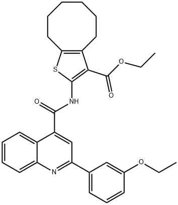 - Synonyms: ethyl 2-[[2-(3-ethoxyphenyl)quinoline-4-carbonyl]amino]-4,5,6,7,8,9-hexahydrocycloocta[b]thiophene-3-carboxylate Cycloocta[b]thiophene-3-carboxylic acid, 2-[[[2-(3-ethoxyphenyl)-4-quinolinyl]carbonyl]amino]-4,5,6,7,8,9-hexahydro-, ethyl ester