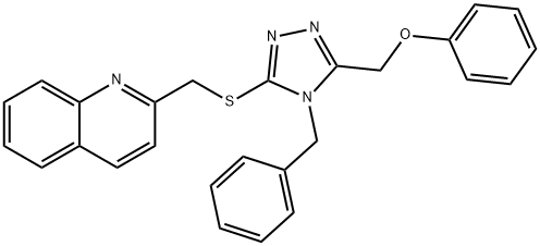 - Synonyms: Quinoline, 2-[[[5-(phenoxymethyl)-4-(phenylmethyl)-4H-1,2,4-triazol-3-yl]thio]methyl]- 2-[[4-benzyl-5-(phenoxymethyl)-1,2,4-triazol-3-yl]sulfanylmethyl]quinoline