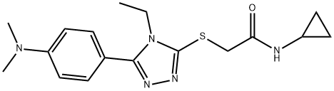 - Synonyms: N-cyclopropyl-2-[[5-[4-(dimethylamino)phenyl]-4-ethyl-1,2,4-triazol-3-yl]sulfanyl]acetamide Acetamide, N-cyclopropyl-2-[[5-[4-(dimethylamino)phenyl]-4-ethyl-4H-1,2,4-triazol-3-yl]thio]-