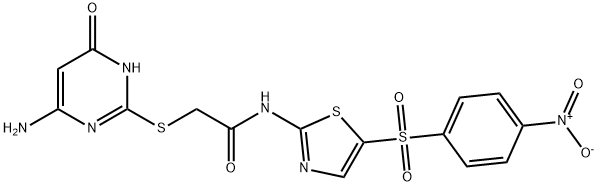 - Synonyms: 2-[(6-amino-4-oxo-1H-pyrimidin-2-yl)sulfanyl]-N-[5-(4-nitrophenyl)sulfonyl-1,3-thiazol-2-yl]acetamide Acetamide, 2-[(4-amino-1,6-dihydro-6-oxo-2-pyrimidinyl)thio]-N-[5-[(4-nitrophenyl)sulfonyl]-2-thiazolyl]-