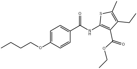 - Synonyms: ethyl 2-[(4-butoxybenzoyl)amino]-4-ethyl-5-methylthiophene-3-carboxylate 3-Thiophenecarboxylic acid, 2-[(4-butoxybenzoyl)amino]-4-ethyl-5-methyl-, ethyl ester