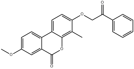 - Synonyms: 8-methoxy-4-methyl-3-phenacyloxybenzo[c]chromen-6-one 6H-Dibenzo[b,d]pyran-6-one, 8-methoxy-4-methyl-3-(2-oxo-2-phenylethoxy)-