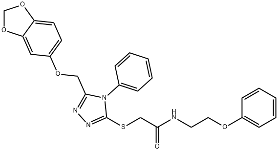 - Synonyms: 2-[[5-(1,3-benzodioxol-5-yloxymethyl)-4-phenyl-1,2,4-triazol-3-yl]sulfanyl]-N-(2-phenoxyethyl)acetamide Acetamide, 2-[[5-[(1,3-benzodioxol-5-yloxy)methyl]-4-phenyl-4H-1,2,4-triazol-3-yl]thio]-N-(2-phenoxyethyl)-