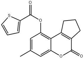 - Synonyms: (7-methyl-4-oxo-2,3-dihydro-1H-cyclopenta[c]chromen-9-yl) thiophene-2-carboxylate 2-Thiophenecarboxylic acid, 1,2,3,4-tetrahydro-7-methyl-4-oxocyclopenta[c][1]benzopyran-9-yl ester
