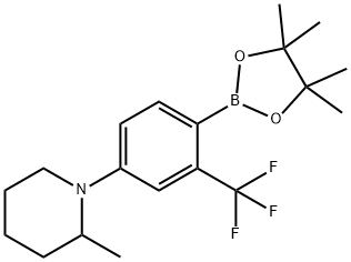 - Synonyms: 2-Trifluoromethyl-4-(2-methylpiperidin-1-yl)phenylboronic acid pinacol ester Piperidine, 2-methyl-1-[4-(4,4,5,5-tetramethyl-1,3,2-dioxaborolan-2-yl)-3-(trifluoromethyl)phenyl]-