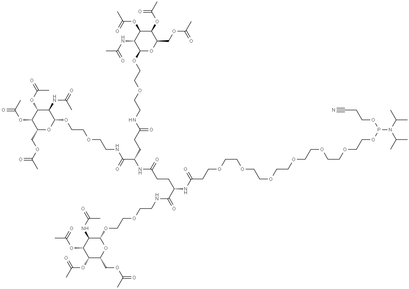 - Synonyms: L-Glutamamide, N2-[23-[bis(1-methylethyl)amino]-26-cyano-1-oxo-4,7,10,13,16,19,22,24-octaoxa-23-phosphahexacos-1-yl]-N-[2-[2-[[3,4,6-tri-O-acetyl-2-(acetylamino)-2-deoxy-β-D-galactopyranosyl]oxy]ethoxy]ethyl]-L-γ-glutamyl-N,N2-bis[2-[2-[[3,4,6-tri-O-acetyl-2-(acetylamino)-2-deoxy-β-D-galactopyranosyl]oxy]ethoxy]ethyl]- L-Glutamamide, N2-[23-[bis(1-methylethyl)amino]-26-cyano-1-oxo-4,7,10,13,16,19,22,24-octaoxa-23-phosphahexacos-1-yl]-N-[2-[2-[[3,4,6-tri-O-acetyl-2-(acetylamino)-2-deoxy-β-D-galactopyranosyl]oxy]ethoxy]ethyl]-L-γ-glutamyl-N,N2-bis[2-[2-[[3,4,6-tri-O-acetyl-2-(acetylamino)-2-deoxy-β-D-galactopyranosyl]oxy]ethoxy]ethyl]-
