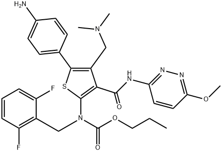 - Product Name:Carbamic acid, N-[5-(4-aminophenyl)-4-[(dimethylamino)methyl]-3-[[(6-methoxy-3-pyridazinyl)amino]carbonyl]-2-thienyl]-N-[(2,6-difluorophenyl)methyl]-, propyl ester