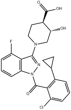 - Product Name:4-Piperidinecarboxylic acid, 1-[1-(2-chloro-6-cyclopropylbenzoyl)-4-fluoro-1H-indazol-3-yl]-3-hydroxy-, (3S,4R)-