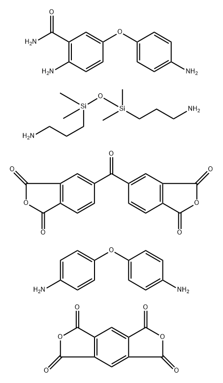 - 英文名称:2-Amino-5-(4-aminophenoxy)benzamide polymer with 1H,3H-benzo[1,2-c:4,5-c']difuran-1,3,5,7-tetrone, 5,5'-carbonylbis[1,3-isobenzofurandione], 4,4'-oxybis[benzenamine] and 3,3'-(1,1,3,3-tetramethyl-1,3-disiloxanediyl)bis[1-propanamine]