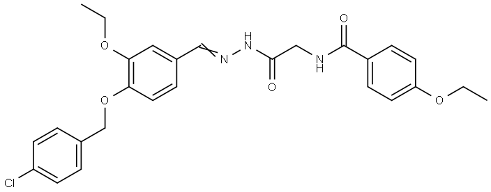 - Synonyms: N-[2-((2E)-2-{4-[(4-CHLOROBENZYL)OXY]-3-ETHOXYBENZYLIDENE}HYDRAZINO)-2-OXOETHYL]-4-ETHOXYBENZAMIDE Glycine, N-(4-ethoxybenzoyl)-, 2-[[4-[(4-chlorophenyl)methoxy]-3-ethoxyphenyl]methylene]hydrazide