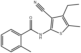 - Synonyms: N-(3-cyano-4-ethyl-5-methylthiophen-2-yl)-2-methylbenzamide Benzamide, N-(3-cyano-4-ethyl-5-methyl-2-thienyl)-2-methyl-