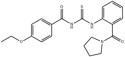- Synonyms: 4-ethoxy-N-[[2-(pyrrolidine-1-carbonyl)phenyl]carbamothioyl]benzamide 4-ethoxy-N-({[2-(1-pyrrolidinylcarbonyl)phenyl]amino}carbonothioyl)benzamide Benzamide, 4-ethoxy-N-[[[2-(1-pyrrolidinylcarbonyl)phenyl]amino]thioxomethyl]-