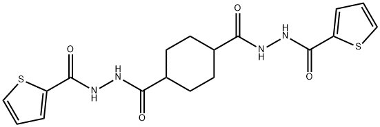 - Synonyms: 1-N',4-N'-bis(thiophene-2-carbonyl)cyclohexane-1,4-dicarbohydrazide N'1,N'4-bis(2-thienylcarbonyl)-1,4-cyclohexanedicarbohydrazide 1,4-Cyclohexanedicarboxylic acid, 1,4-bis[2-(2-thienylcarbonyl)hydrazide]