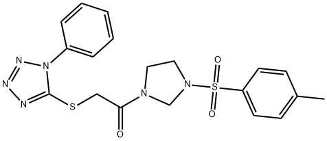 - Synonyms: 1-{3-[(4-methylphenyl)sulfonyl]imidazolidin-1-yl}-2-[(1-phenyl-1H-tetrazol-5-yl)sulfanyl]ethanone Ethanone, 1-[3-[(4-methylphenyl)sulfonyl]-1-imidazolidinyl]-2-[(1-phenyl-1H-tetrazol-5-yl)thio]-