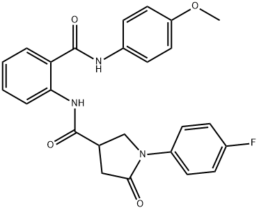 - Synonyms: 1-(4-fluorophenyl)-N-{2-[(4-methoxyphenyl)carbamoyl]phenyl}-5-oxopyrrolidine-3-carboxamide 3-Pyrrolidinecarboxamide, 1-(4-fluorophenyl)-N-[2-[[(4-methoxyphenyl)amino]carbonyl]phenyl]-5-oxo-