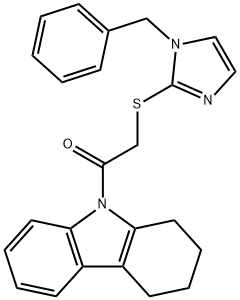 - Synonyms: 2-[(1-benzyl-1H-imidazol-2-yl)sulfanyl]-1-(1,2,3,4-tetrahydro-9H-carbazol-9-yl)ethanone Ethanone, 2-[[1-(phenylmethyl)-1H-imidazol-2-yl]thio]-1-(1,2,3,4-tetrahydro-9H-carbazol-9-yl)-
