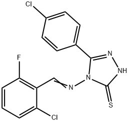 - Synonyms: 4-[(2-chloro-6-fluorobenzylidene)amino]-5-(4-chlorophenyl)-4H-1,2,4-triazole-3-thiol 3H-1,2,4-Triazole-3-thione, 4-[[(2-chloro-6-fluorophenyl)methylene]amino]-5-(4-chlorophenyl)-2,4-dihydro- 4-((2-CL-6-FLUOROBENZYLIDENE)AMINO)-5-(4-CHLOROPHENYL)-4H-1,2,4-TRIAZOLE-3-THIOL