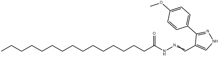 - Synonyms: (E)-N'-((3-(4-methoxyphenyl)-1H-pyrazol-4-yl)methylene)palmitohydrazide Hexadecanoic acid, 2-[[3-(4-methoxyphenyl)-1H-pyrazol-4-yl]methylene]hydrazide