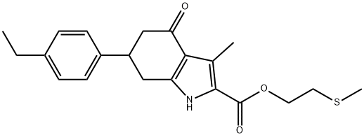 - Synonyms: 2-(methylthio)ethyl 6-(4-ethylphenyl)-3-methyl-4-oxo-4,5,6,7-tetrahydro-1H-indole-2-carboxylate 1H-Indole-2-carboxylic acid, 6-(4-ethylphenyl)-4,5,6,7-tetrahydro-3-methyl-4-oxo-, 2-(methylthio)ethyl ester