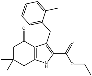 - Synonyms: ethyl 6,6-dimethyl-3-(2-methylbenzyl)-4-oxo-4,5,6,7-tetrahydro-1H-indole-2-carboxylate 1H-Indole-2-carboxylic acid, 4,5,6,7-tetrahydro-6,6-dimethyl-3-[(2-methylphenyl)methyl]-4-oxo-, ethyl ester