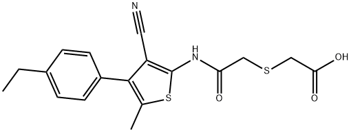 - Synonyms: 2-((2-((3-cyano-4-(4-ethylphenyl)-5-methylthiophen-2-yl)amino)-2-oxoethyl)thio)acetic acid Acetic acid, 2-[[2-[[3-cyano-4-(4-ethylphenyl)-5-methyl-2-thienyl]amino]-2-oxoethyl]thio]-